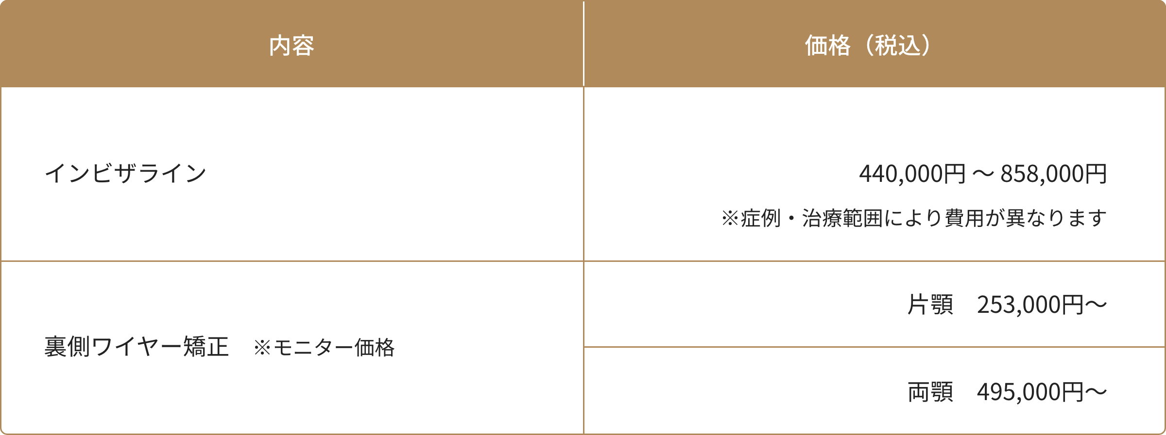 歯列矯正治療に関しては、インビザライン認定ドクターをはじめ、経験豊富な歯科医師が担当いたしますので安心してお任せください。